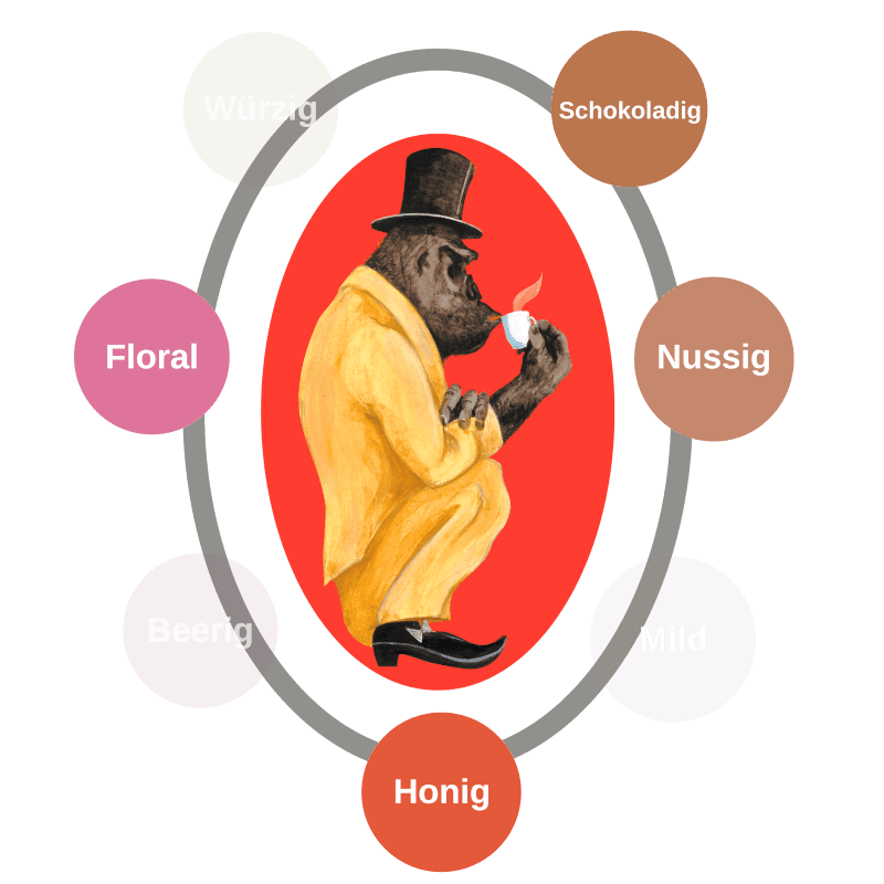 Elegant und entspannt: So genießt das ikonische Tier seine Tasse. Der Gorilla steht für Kraft, Genuss, Naturverbundenheit und Ruhe. Kein Wunder, dass Kaffee Joerges ihn als Namensgeber und Symbolfigur gewählt hat. 2004 entstand die Kaffeemarke Gorilla.